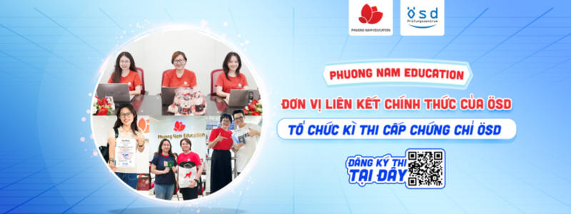 Một trong những điểm nổi bật giúp trung tâm tiếng Đức Phương Nam (Phuong Nam Education) khẳng định vị thế trong đào tạo tiếng Đức tại Việt Nam là việc trở thành đối tác liên kết chính thức của Hiệp hội đánh giá năng lực tiếng Đức ÖSD (Österreichisches Sprachdiplom Deutsch). Trung tâm được ủy quyền tổ chức các kỳ thi cấp chứng chỉ ÖSD tại Việt Nam theo đúng tiêu chuẩn quốc tế, giúp học viên tiết kiệm thời gian, chi phí và thuận tiện hơn khi tiếp cận kỳ thi.