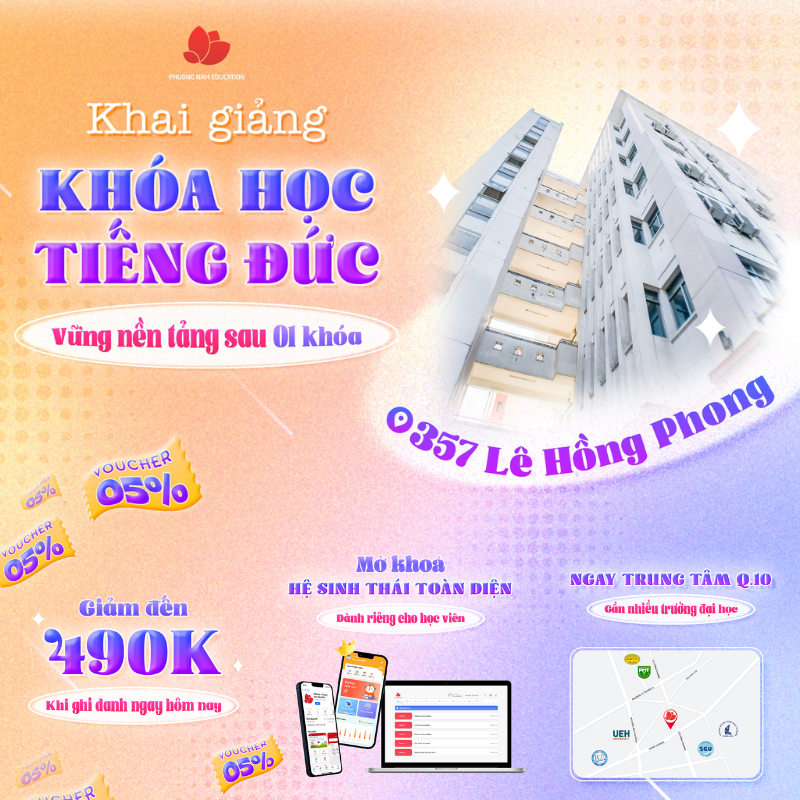 Không chỉ là hành trình chinh phục một ngôn ngữ mới, học tiếng Đức còn là bước đệm quan trọng để bạn tiếp cận cơ hội học tập, làm việc và định cư tại Đức và các quốc gia châu Âu. Hiểu được nhu cầu đó, Phuong Nam Education mang đến các khóa học tiếng Đức đa dạng, đáp ứng mọi nhu cầu của học viên: từ giao tiếp cơ bản cho đến luyện thi chứng chỉ quốc tế.